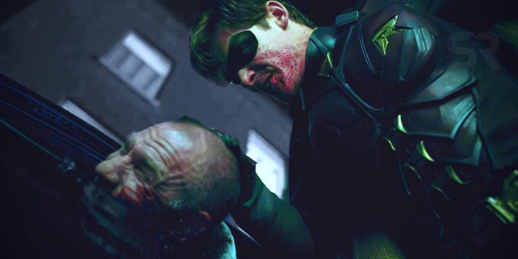 Certainly, there is an HBO feel to the production: a more grounded take on the superhero genre for DC with a gritty reality reflected visually in the low lighting and the violence. There is none of the campy violence seen in Gotham or the Arrowverse. When Robin, for instance, deals to villains you feel it in a visceral way. In the “F*ck Batman” sequence, Robin scrapes a thug’s face along a wall leaving a trail of blood and flesh. And in episode two he thrusts a pair of shears hilt-deep into a torturer’s groin, just moments after throwing an R-shaped ninja star into another villain’s eyeball.