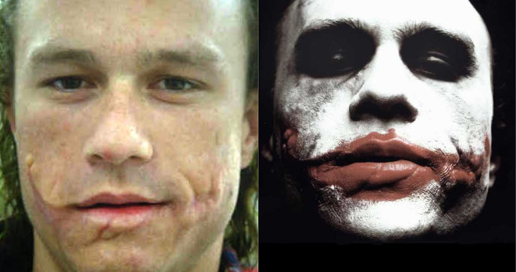Heath Ledger’s Joker tops many lists as best Joker performance and, indeed, one of the best onscreen villains. He’s an anarchist, with no plan other than to cause chaos. In no way does Ledger imitate Nicholson’s performance, and his makeup follows suit. The corners of Ledger’s mouth are clearly mutilated by the unkind cuts of a blade, echoing the butchery sustained by the young Gwynplaine in The Man Who Laughs. The Joker says his father gave him those scars, but later he contradicts this and suggests he mutilated his own face. Joker’s hair, though, is more like Barkilphedro’s unkempt mop–a trend which is continued in Joaquin Pheonix’s Joker.
