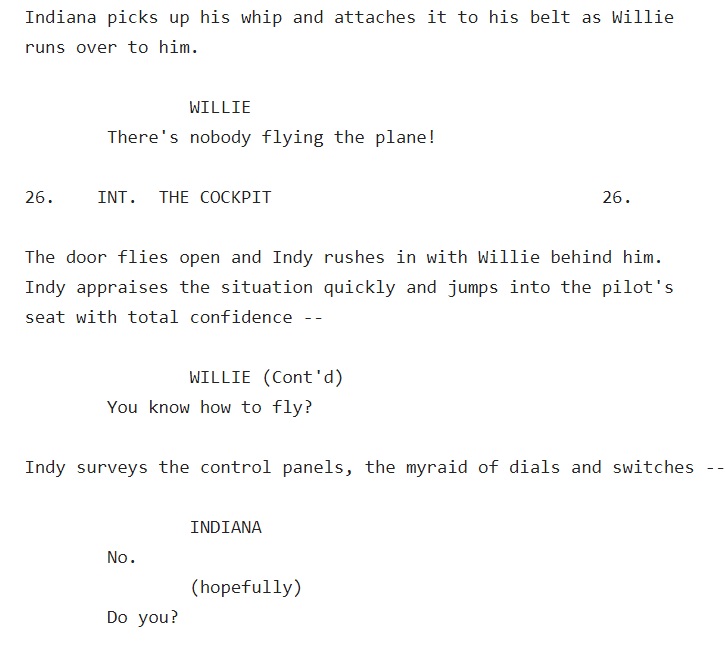 The escape is the same as it is in the screenplay’s first draft and the first-revised draft, but all mention of Short Round’s battle with Lao She’s biplanes has been removed in the final film. Most likely, to give all agency to Indy.