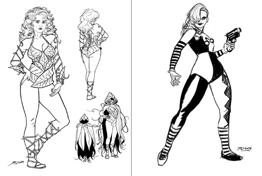 Funnily enough, Quinones did say that Winona Ryder wasn’t left out, and was considered for the part of Zatanna. No drawings of her proposed character were presented. But he did show drawings of Poison Ivy and Harley Quinn. Though Quinones does not say who he had in mind when drawing these two, Poison Ivy does look like Geena Davis, who was a big Nineties star.